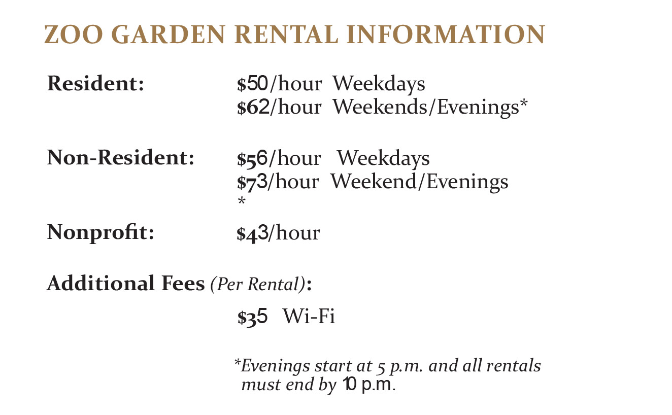 Tables, chairs and bathrooms are not included. Electricity is included. Depending on the event requirements, minimum rental is two hours. General Liability Certificate of Insurance of $1M may apply. ABC regulations apply if serving alcohol.